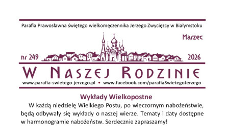Przedstawiamy Państwu nowy numer gazetki parafialnej (Marzec 2026). Wersję papierową zawsze można odebrać w naszej świątyni!Parafia Prawosławna