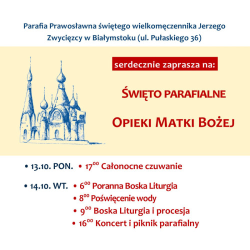 Serdecznie zapraszamy na Święto parafialne - Opieki Matki Bożej!