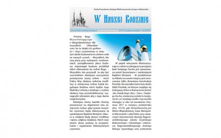 Ukazał się świąteczny numer gazetki parafialnej „W Naszej Rodzinie”. Znajdziemy w nim jak zawsze słowo o. Proboszcza, kilka słów o aktualnościach parafialnych, o wyświęceniu głównej cerkwi św. wlkm. Jerzego, jak i harmonogram nabożeństw.30.08.2017